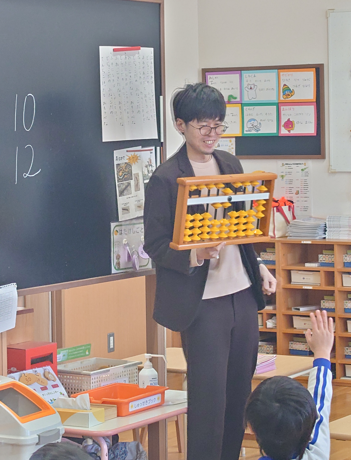 小学校へ向けた取り組みのひとつとして、「45分間机に向かって座り、先生の話を聞く」ことを目的とし、その一つのきっかけとしてそろばんに挑戦しています。